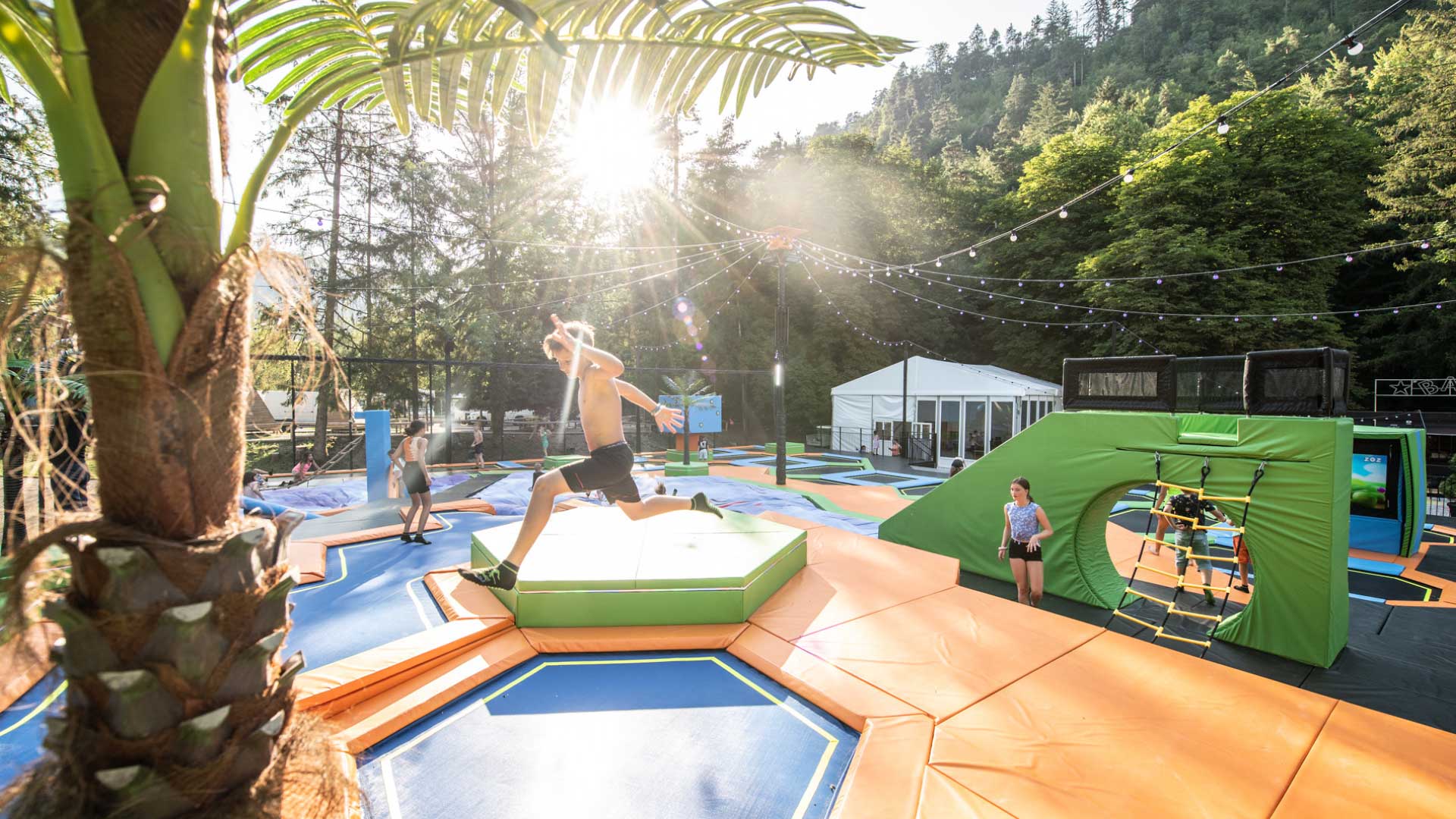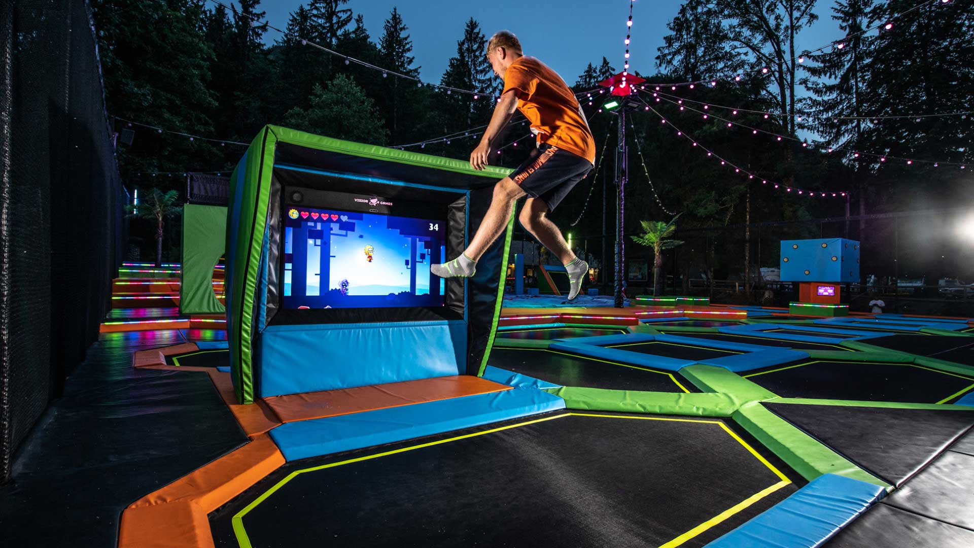 Etwas ganz Einzigartiges wurde kürzlich von Akrobat geschaffen - der Fun Park Zaka Bled. Dieser Trampolinpark im Freien, ausgestattet mit Licht, Ton und interaktiven Spielen, ist bereits eröffnet. Der Fun Park Zaka Bled enthält die neueste Technologie und kann daher als Smart Park bezeichnet werden. Ein Smart Park bedeutet, dass Sie alle Informationen vom Springen im Park direkt in einer App lesen können. Denken Sie an die Anzahl der Sprünge pro Trampolin, die am häufigsten verwendeten Spiele, reale Benachrichtigungen von z. Fehlfunktionen z.B. interaktive Spiele, Airbags oder defekte Trampoline und lassen Sie sich im Voraus über den Verschleiß von Teilen informieren. Die hier gefundene Beleuchtung ist nicht nur außen als eigentliche Beleuchtung vorhanden, sondern auch in Trampoline integriert. Alles kann angepasst werden.