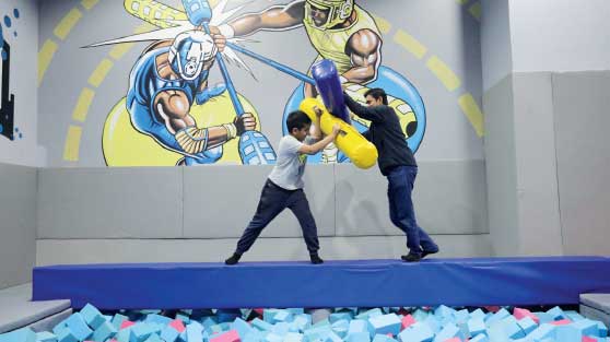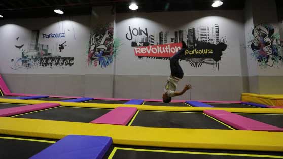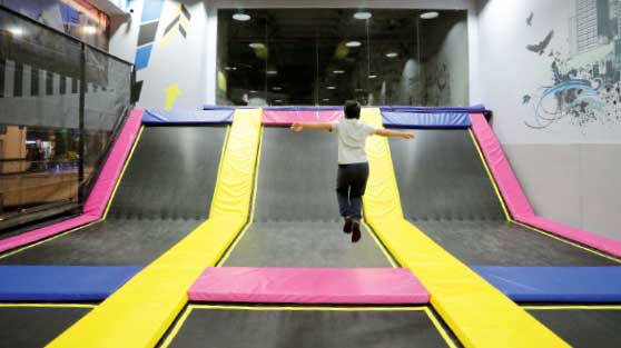 Schlichter Trampolinpark mit einigen schön gestalteten Standardattraktionen.