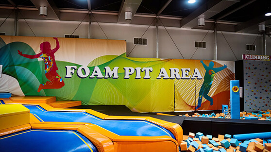 FlyZone park includes the most popular modules, such as freestyle area, foam pit, ninja warrior, dodgeball, climbing wall, HP interactive wall, valo jump, waterfall, air bag. A special toddler zone offers fun games for children under 5 years old and their parents.
