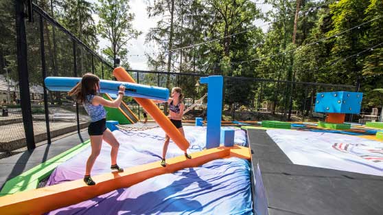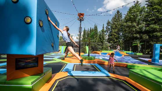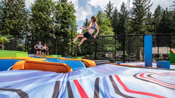 Something very unique has been created by Akrobat recently - the Fun Park Zaka Bled. This Outdoor Trampoline Park, equipped with lights, sound, and interactive games, is already open. Fun Park Zaka Bled contains the latest technology and, therefore, can be called a Smart Park. A Smart Park means you can read all the information from jumping in the park directly in an app. Think about the number of jumps per trampoline, the most used games, real-life notifications of e.g. malfunctions to e.g. interactive games, airbags, or defective trampolines, and get notifications in advance for wear and tear of parts. The lighting found here is not only present outside as actual lighting, but also integrated into Trampolines. Everything can be customized.