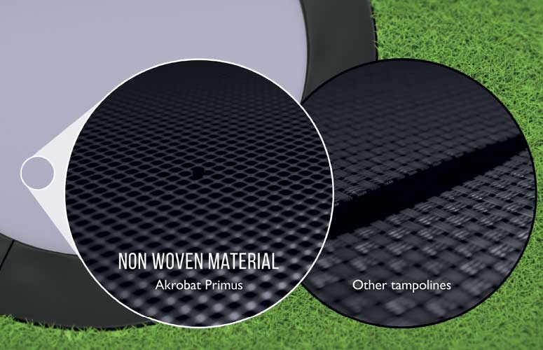 Push your limit and experience next level Airflow with our specially engineered jumping mat. With a 70% open structure allowing for minimal Air Resistance through the mat, the AkroVent Sport+ will have you jumping better, smoother and higher than ever before. The AkroVENT Sport+ jumping mat combined with high performance springs and heavy duty frame this trampoline is the choice for those who demand the best. XCITYX jumping mat is equipped with a spring protection flap to prevent foot injuries while ventilating air through the jumping mat prevents annoying pad lifting and noise reduction while jumping.