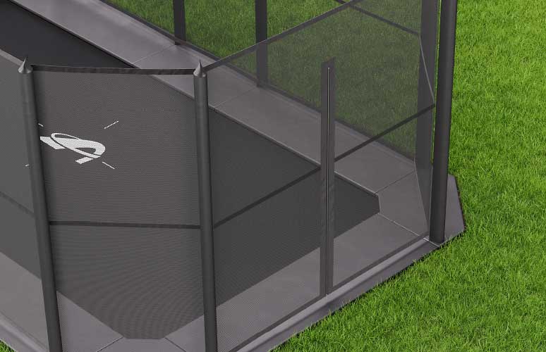 Our developing team took the Akrobat trampoline design to a completely different level with its top feature – a ventilating jumping mat that leaves the frame pads securely attached, preventing annoying pad lifting and slapping noise. Ventilating air through the jumping mat instead of on the sides makes Akrobat trampolines not just quieter but also safer to use. The extra protective edge covers the springs, so the jumpers will not accidentally injure their foot between a spring while jumping. The effective system with 70% air permeability provides the experience of virtually no air resistance when jumping, which allows for an unforgettable jump experience.